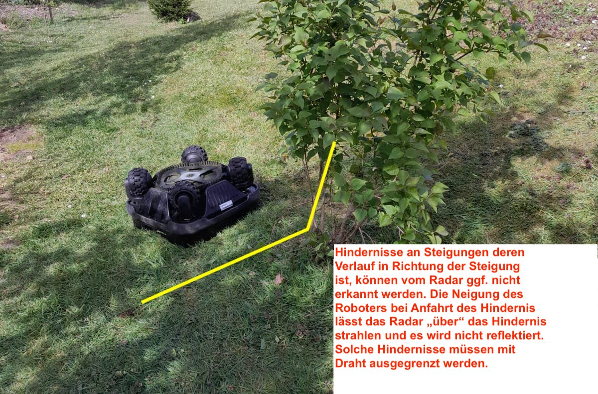 Obwohl relativ wenige Hindernisse die im normalen Betrieb in normalen Gärten auftauchen so beschaffen sind, dass sie ein Radar Signal nicht reflektieren, kann es vorkommen.