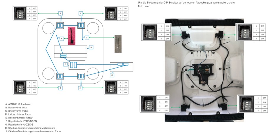 - Falsche Einstellung der DIP Schalter der Radar Sensoren im CAN Bus Verlauf.